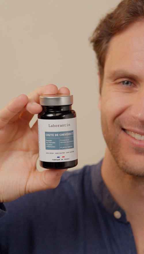 Chute de Cheveux Homme est un complément alimentaire à la double efficacité pour lutter contre la chute et stimuler la croissance naturelle des cheveux et de la barbe.