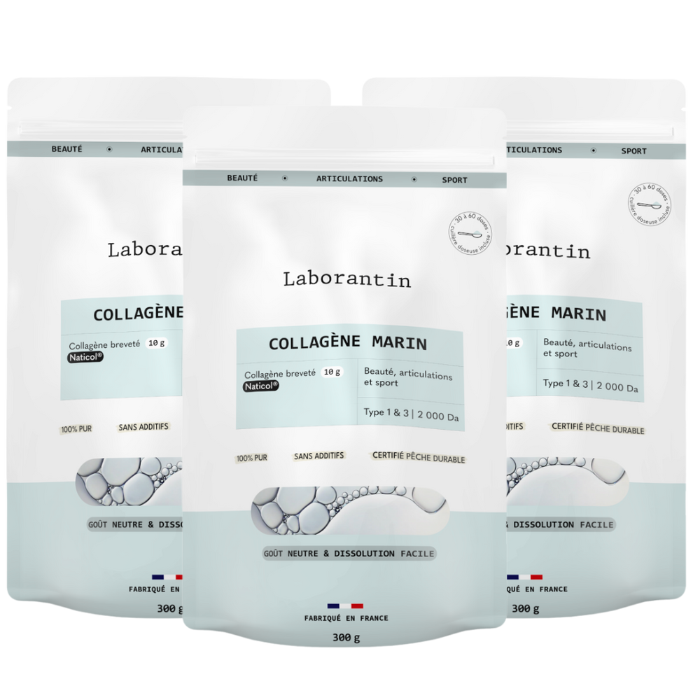Notre Collagène Marin en poudre, 100% pur, de type I et III et certifié pêche durable, réduit naturellement les rides et ralentit le vieillissement cutané.