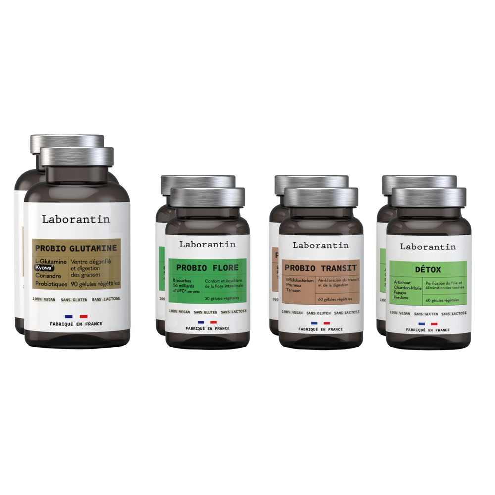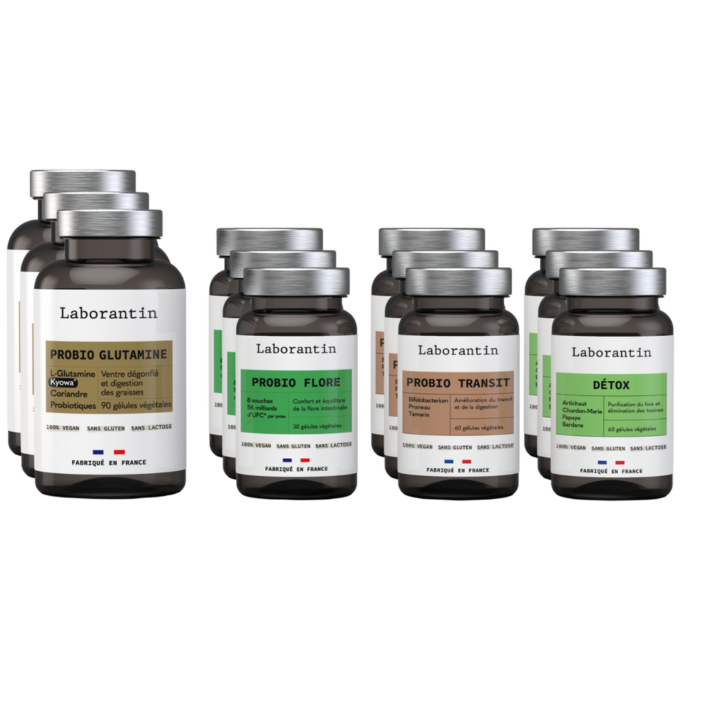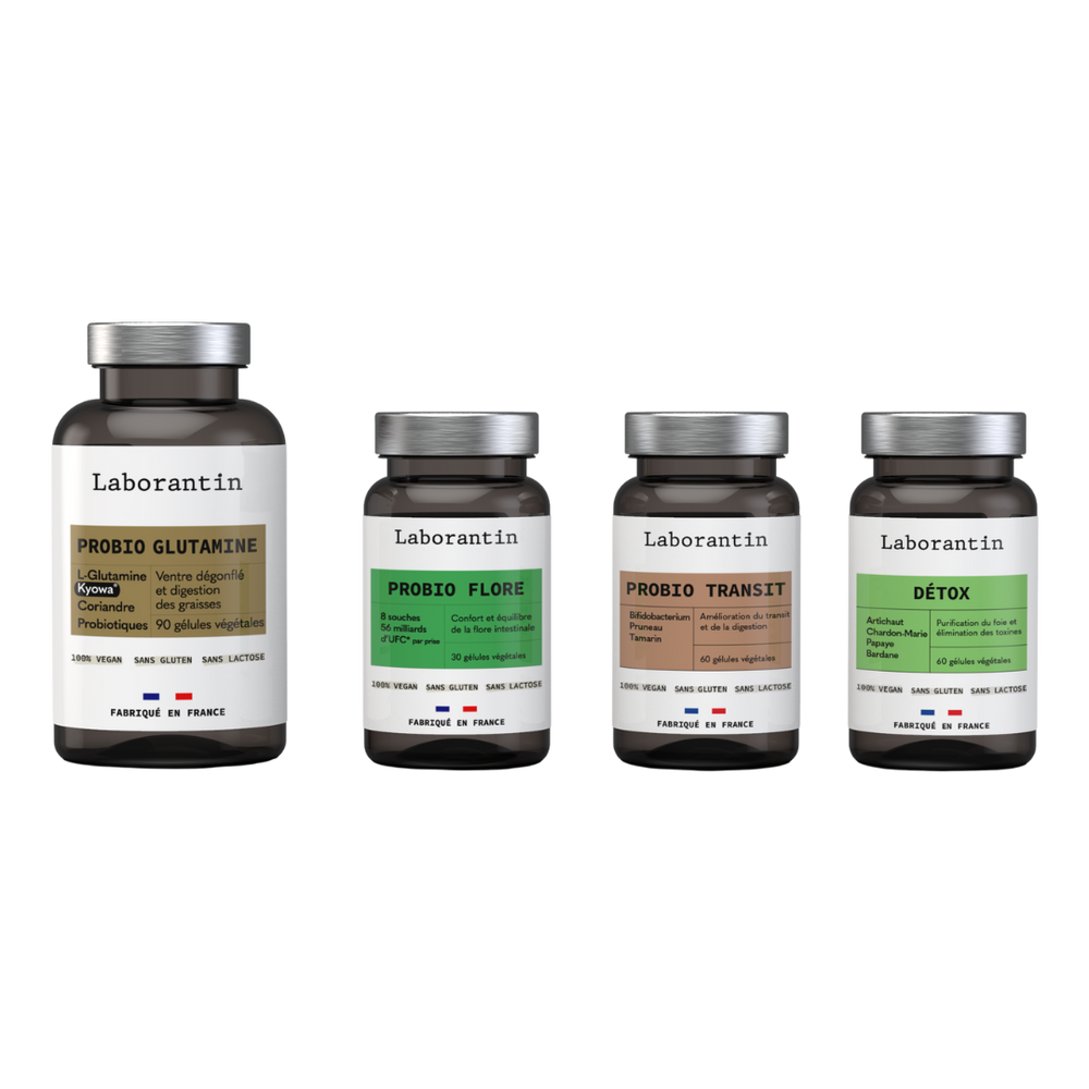 Le Pack Super Digestion rassemble 4 compléments complémentaires pour un soutien digestif global : Probio Transit, Probio Flore, Detox et Probio Glutamine. Il agit sur le transit, la flore intestinale, les toxines et les inconforts digestifs pour une digestion facilitée, un ventre dégonflé et un confort durable.