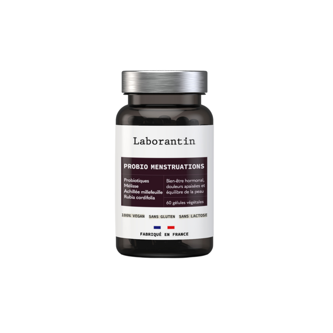Avec une formule unique à base de probiotiques et de plantes, Probio Menstruations réduit les douleurs liées aux règles et aide à lutter contre l’acné hormonale avant et durant le cycle.